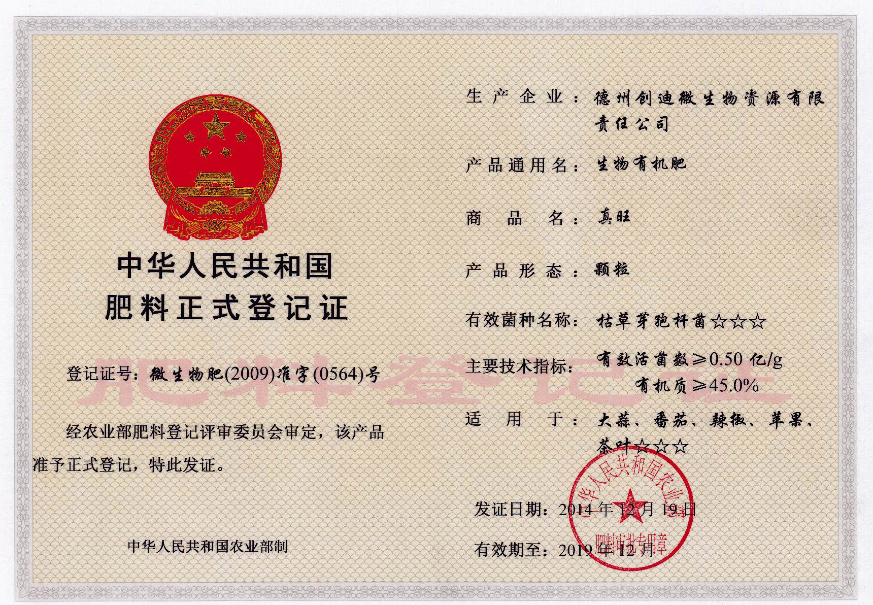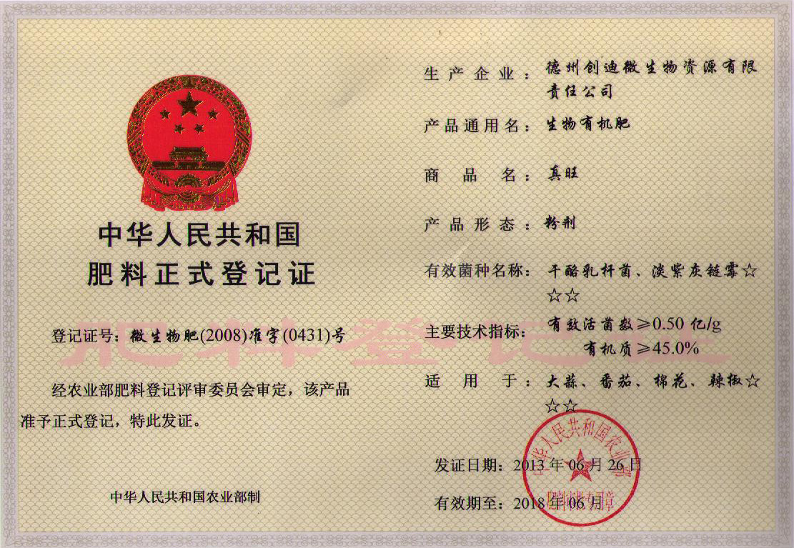 生(shēng)物有機(jī)肥登記證