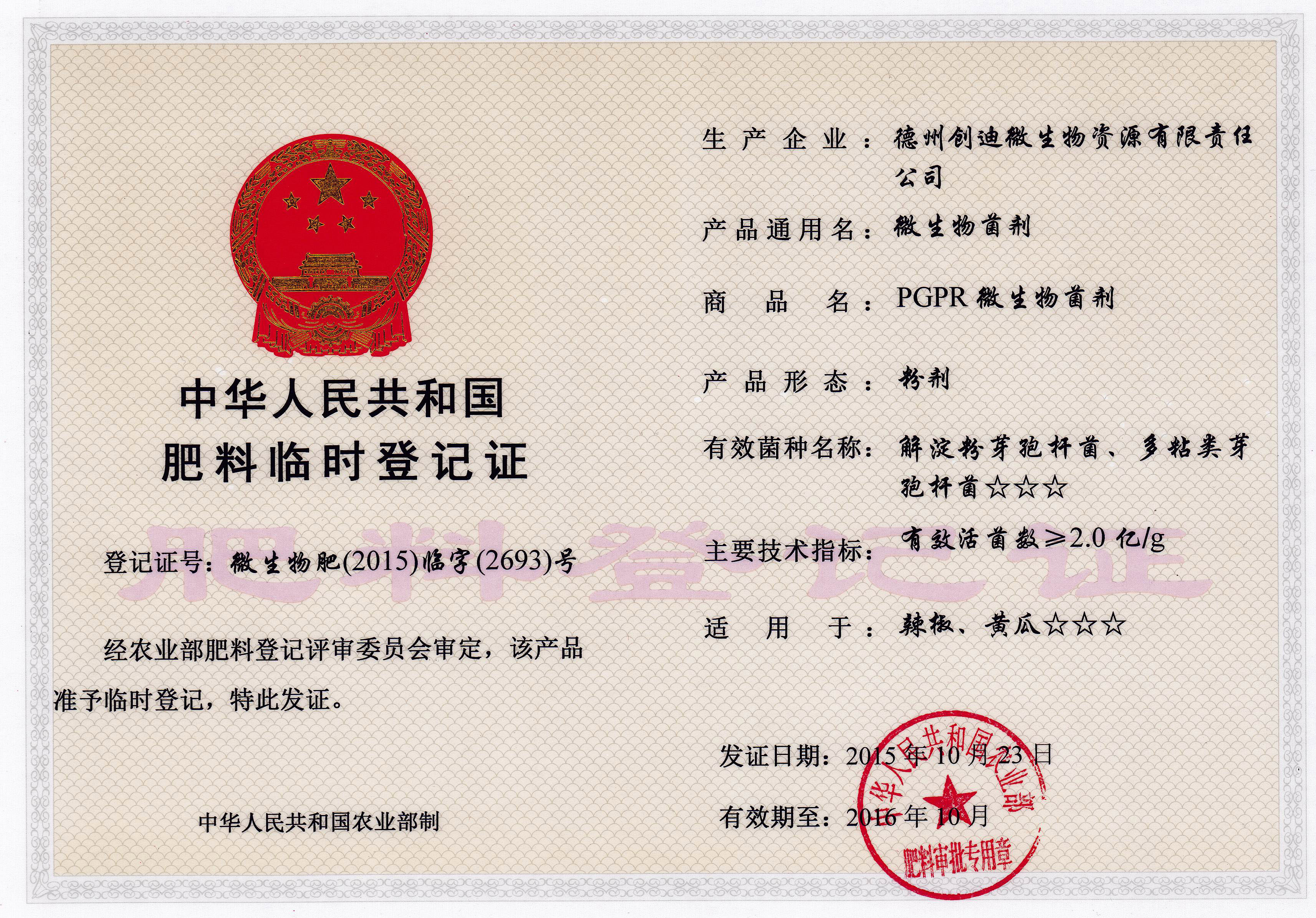 微生(shēng)物菌劑登記證