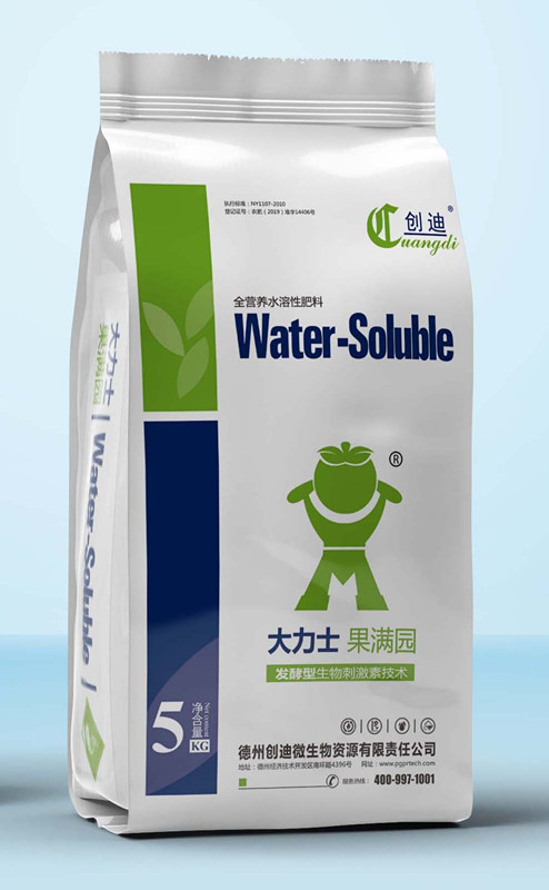 大(dà)力士 果滿園 是全營養水溶性肥料,與大(dà)多數水溶性肥料不同,本品除含無機(jī)營養、有機(jī)營養外,還(hái)含有發酵型生(shēng)物刺激素、植物根際促生(shēng)細菌(PGPR),是一種四位一體(tǐ)的全營養創新性産品。